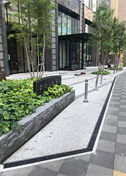 | 表面処理 | カチオン塗装 曲り道に沿った側溝のフタを納品しました |